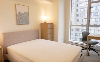 - Bedrooms: Full bed frame w/ mattress; desk & chair; side tables; lamps.